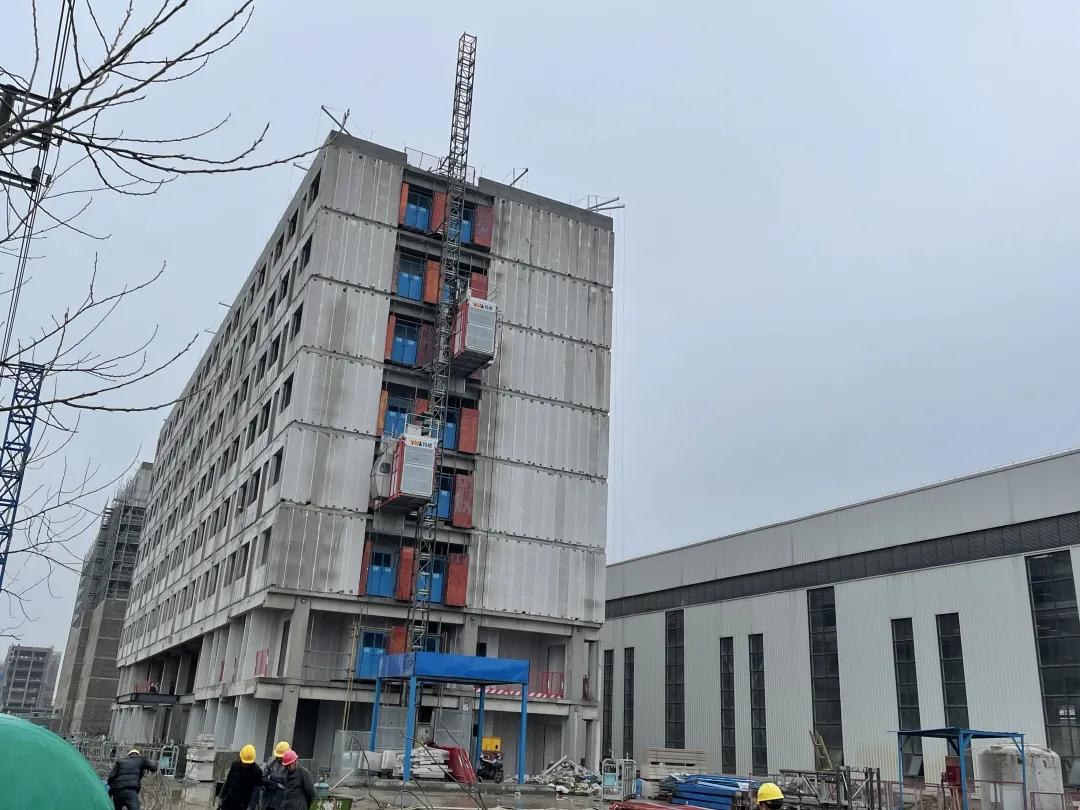 1#、2#研发中心是PC构件生产基地项目附属楼的重要组成部分,是集产品研发展示、办公和住宿等于一体的综合性功能区。项目部秉承“就地取材”、“绿色环保”的理念,用好用足已投产厂区生产的构件,采用钢-混组合等框架结构体系,应用预制混凝土柱、钢梁、预应力混凝土梁、预应力PK-Ⅲ板、ALC预制墙板等新型结构形式,顺利完成了主体结构的建设。建成后,该区域将配合众驰公司用于搅拌站和二期厂房运营配套使用。
